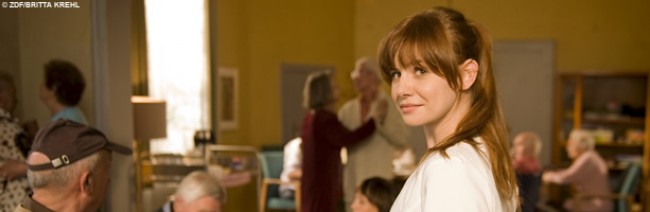 Josefine Preuß spielt die junge Pflegerin Lotta, die es mit einer neuen Chefin und einer Schwangerschaft zu tun hat.