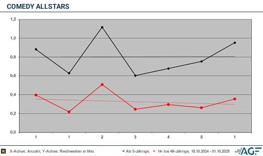 Am Mittwoch, den 1. Oktober 2025, lief schließlich die vorerst letzte Ausgabe. Inzwischen sahen 0,95 Millionen Menschen die Clipshow, in der deutsche Komiker über ihre Anfänge sprachen und alte Weggefährten zu Wort kamen. Das kam beim Publikum gut an – der Marktanteil stieg auf 4,7 Prozent. Auch in der Zielgruppe sprach sich das Format weiter herum: 0,35 Millionen Zuschauer sorgten für einen sehr guten Marktanteil von 9,4 Prozent.