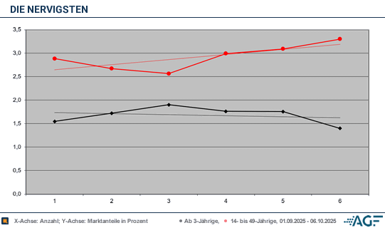 In der zweiten Woche wurden die „nervigsten Promis auf Social Media“ gekürt. 0,14 Millionen Menschen verfolgten die Show, die im November 2024 erstmals gelaufen war. Der Marktanteil lag bei 1,7 Prozent. Da Social Media schnelllebig ist, überraschte es kaum, dass die Wiederholung nur 0,04 Millionen Zuschauer aus der Zielgruppe erreichte – das bedeutete magere 2,7 Prozent.