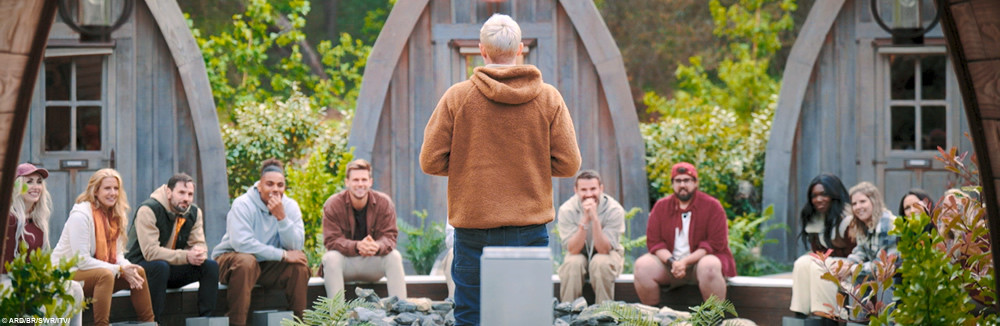 In der ARD Mediathek erschienen die zwölf Episoden in drei Blöcken zu je vier Folgen – am 25. September, 2. Oktober und 9. Oktober 2025. Dadurch konnte das Publikum direkt mitdiskutieren und Theorien austauschen. Vor allem die Spielrunden funktionierten gut: Bereits in der ersten Episode wurde die Soldatin Dana aus Duisburg als Werwolf enttarnt, während die anderen beiden Bösewichte im Verborgenen blieben. Das Spielprinzip ist simpel, aber effektiv: Drei Werwölfe leben gemeinsam mit zehn Dorfbewohnern in einer abgelegenen Hütte. In der Auftaktfolge würfelt jeder seine Rolle aus, Zusatzfähigkeiten werden in Minispielen erspielt. Doch hier zeigt sich bereits die größte Schwäche – mit zwölf Folgen ist das Format schlicht zu lang geraten.