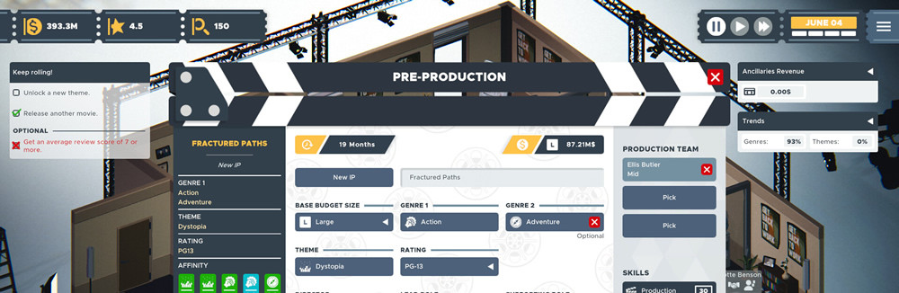 Das Konzept ist so verlockend wie naheliegend: In «The Executive» übernimmt man die Leitung eines Filmstudios und steuert alle Entscheidungen, die in der realen Branche täglich zwischen Vision und Kalkül fallen. Zu Beginn steht ein kleines Team mit überschaubarem Budget und dem Ziel, in der gnadenlosen Welt Hollywoods Fuß zu fassen. Schnell wird klar: Nur wer kreative Entscheidungen mit wirtschaftlichem Denken vereint, kann sich dauerhaft behaupten.