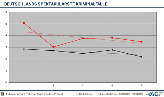 Am 19. September 2025 sah es für «Deutschlands spektakulärste Kriminalfälle» weiterhin nicht rosig aus. Der Zusammenschnitt weiterer Prominenter wie Rudolph Moshammer lockte nur 0,52 Millionen Fernsehzuschauer ab drei Jahren an, der Marktanteil bewegte sich bei 2,5 Prozent. Immerhin ging es bei den jungen Menschen mit 0,15 Millionen leicht aufwärts. Doch beim jungen Publikum blieb Kabel Eins mit 3,8 Prozent unter dem Senderschnitt. Auch die nächste Ausgabe, die beim Gesamtpublikum 0,63 Millionen Zusehende anlockte, konnte nur 2,8 Prozent Marktanteil vorweisen. Die vierte Folge sicherte sich 0,18 Millionen junge Zuschauer und 3,5 Prozent Marktanteil.