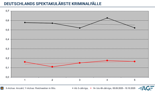 Die letzte Ausgabe, am 10. Oktober gesendet, behandelte die Liebesschwindlerin Lydia L., den Serienmörder Manfred Seel und die Entführung des Millionärs Reemtsma 1996 – alles in Beiträgen zwischen 21 und 27 Minuten. True-Crime-Fans sind allerdings deutlich mehr Laufzeit gewohnt. Deshalb ist es auch verständlich, dass Kabel Eins nur 0,52 Millionen Zuschauer erreichte und auf 2,2 Prozent Marktanteil kam. In der Zielgruppe standen 0,17 Millionen auf der Uhr, der Marktanteil bewegte sich bei 3,5 Prozent.