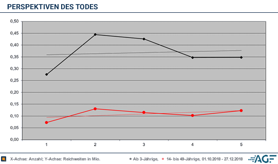 Eine reiche Familie wird in Starnberg ermordet, illegale Waffen und ein Handyvideo führen die Ermittler schließlich zu zwei jungen Männern. Ebenfalls Teil der Sendung ist der Fall eines elfjährigen Mädchens, das an Silvester in einem Dorf in Unterfranken erschossen wurde. Auch der Mord an Walter Lübcke ist Thema. Die drei Fälle sahen im Schnitt 0,35 Millionen Fernsehzuschauer; Kabel Eins holte damit 1,5 Prozent Marktanteil. Bei den jungen Erwachsenen sorgten 0,10 Millionen für 2,6 Prozent.Die vorerst letzte Folge über Mordfälle in Bad Reichenhall und Freiburg sahen noch 0,35 Millionen Menschen, der Marktanteil blieb bei 1,5 Prozent stabil. In der Zielgruppe kam die fünfte Ausgabe auf 0,12 Millionen und 2,8 Prozent. Die fünfteilige Reihe «Perspektiven des Todes» war für Kabel Eins ein Reinfall: Lediglich 0,37 Millionen Menschen ab drei Jahren sahen zu, der Marktanteil lag bei 1,6 Prozent. In der Zielgruppe floppte das Programm mit 0,11 Millionen und 2,7 Prozent.