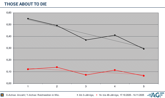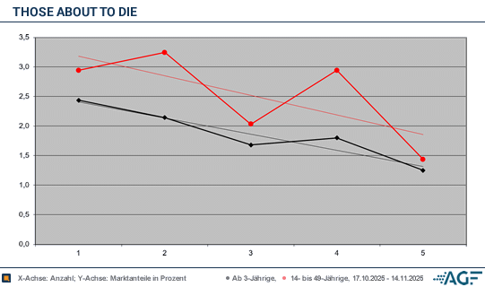 An Halloween beziehungsweise am Reformationstag hielt ProSieben am historischen Drama fest, das bereits im Sommer 2024 bei der Veröffentlichung nur gemischte Kritiken erhielt. Die Geschichten „Varrat“ und „Blutsverwandtschaft“ sahen sich 0,37 Millionen Zuschauer an, der Marktanteil fiel auf schreckliche 1,7 Prozent. Noch drastischer war der Absturz bei den jungen Erwachsenen: Nur 0,07 Millionen wurden gemessen, was einem Marktanteil von gerade einmal zwei Prozent entspricht.