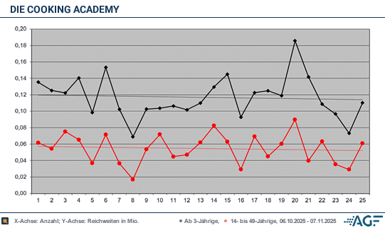 Angekündigt hatte sich diese Katastrophe bereits zum Start weg. Die Daten des Neustarts wiesen am ersten Abend 6. Oktober ab 18.00 Uhr, Resonanzen in sehr bedenklichen Größenordnungen von 0,06 Millionen jungen Zuschauenden aus, die einen Anteil von völlig desolaten 3,3 Prozent an ihrem Markt mit sich führten – ein extrem enttäuschendes Resultat zum Einstand. Die Älteren waren übrigens ebenfalls in ganz niedriger Anzahl vertreten: Sie schalteten zu verschwindend geringen 1,0 Prozent (0,14 Millionen) ein. Ernüchternder Weise verharrte man am zweiten Tag auf eben diesem Niveau.