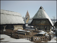 Das Bausystem ist einer der größten Pluspunkte. Statt starre Gitter zu verwenden, erlaubt Manor Lords freies Platzieren – Straßen entstehen durch Wege, die Bewohner tatsächlich nutzen. Dadurch sehen Siedlungen organisch aus, gewachsen statt geplant. Optisch beeindruckt das Spiel durch seine Liebe zum Detail. Rauch steigt aus Kaminen, Bauern führen Ochsenkarren über schlammige Wege, Kinder spielen auf den Höfen, und der Wechsel der Jahreszeiten verändert nicht nur das Aussehen, sondern auch die Spielmechanik. Der Winter etwa zwingt zum Vorratsdenken, während der Sommer Erntezeit bedeutet.