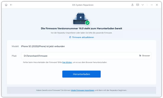 2. Laden Sie das vorgeschlagene iPadOS Firmware Paket herunter.