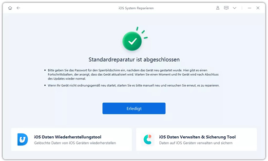 5. Warten Sie, bis das Programm den Abschluss meldet und das iPad automatisch neu startet.