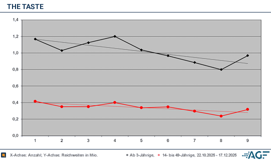 Zwar konnte diese Talfahrt zum Finale am 17. Dezember nochmal leicht durchbrochen werden, weil immerhin etwas optimierte 7,8 Prozent (0,32 Millionen) zusammenkamen – an die wirklich erfolgreiche Phase zum Staffel-Beginn konnte man enttäuschender Weise aber dennoch nicht mehr anknüpfen. Ein Stück frustrierend sicher zudem, dass die Sendung auch insgesamt zum Finale unter der Millionen-Schwelle bei 0,97 Millionen und verhaltenen 4,8 Prozent verblieb.