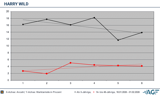 Einen interessanten Blick auf die Quoten liefert das ZDF mit seiner Serie «Harry Wild – Mörderjagd in Dublin». Die britische Produktion stammt vom amerikanischen Sender Acorn TV, die Hauptrolle übernimmt Jane Seymour. Das ZDF stellte am Sonntag, den 18. Januar 2026, alle sechs Episoden der vierten Staffel in die ZDFmediathek.