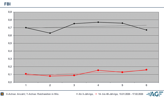 Knapp zwei Monate mussten die Fans der Serie «FBI» auf die Fortsetzung der siebten Staffel warten. Doch seit Dienstag, 13. Januar 2026, wurde die Geschichte endlich fortgesetzt. Los ging es mit der 17. Folge, die den Titel „Familiensache“ trägt. Ab 22.15 Uhr schalteten 0,70 Millionen Fernsehzuschauer ab drei Jahren ein, der Marktanteil beim Gesamtpublikum lag bei 4,4 Prozent. Äußerst zurückhaltend fiel das Ergebnis bei den jungen Menschen aus: Hier wurden von Sat.1 nur 0,11 Millionen Zuschauer akquiriert, der Marktanteil lag bei sehr schwachen 3,6 Prozent.