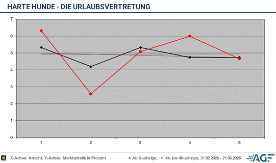In Nümbrecht im Oberbergischen unweit von Köln lebt das wohl ungewöhnlichste Hunderudel Deutschlands. Das Pfötchen-Paradies versteht sich als Zentrum für alte, kranke und traumatisierte Hunde. Hier leben 35 Hunde mit ganz individuellen Bedürfnissen. Und jetzt musste das Team auch hier einspringen, jedoch schalteten nur noch 0,88 Millionen Menschen ein. Der Marktanteil fiel auf 4,2 Prozent. Seeger ermöglichte der Betreiberin Conny einen Urlaub, da sie vier Jahrzehnte ihre eigenen Bedürfnisse hinten anstellte. Aus der Zielgruppe bekamen das aber nur 0,09 Millionen Menschen mit, der Marktanteil fiel auf schwache 2,6 Prozent.