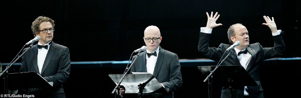 Zum 50-jährigen Jubiläum der Buchreihe, das „Die drei Fragezeichen“ 2014 feiern, gönnten die Sprecher nicht nur ihren Fans ein erneutes Live-Stelldichein mit extra für die Show geschriebener Folge, Boygroup-Tanzeinlagen und regelrechten Standup-Qualitäten seitens der drei Synchronschauspieler. Auch RTL bietet allen jungen und junggeblieben Fans der erfolgreichsten Hörspielserie aller Zeiten einen ganz besonderen Service. Mit «Phonophobia», einer Geschichte über ein geheimnisvolles Klanginstitut, präsentiert der Kölner Privatsender das brandaktuelle Tourprogramm – live on tape und ungeschnitten! Aufgenommen wurde in der Kölner Lanxess Arena, wo «Phonophobia» in diesem Jahr einen fulminanten Tourabschluss feierte. Und ein Ende dieses Erfolgs ist nicht in Sicht: Wegen hoher Nachfrage werden Justus, Peter und Bob schon im kommenden Jahr mit Zusatzshows noch einmal durch Deutschland touren.
