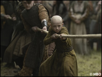 Was der Serie zugutekommt, ist ihr Roadmovie-Charakter. Westeros wird hier nicht als Schachbrett der Mächtigen gedacht, sondern als Landkarte des Alltäglichen. Turniere sind keine bombastischen Setpieces, sondern soziale Verdichtungsräume, in denen Klassenunterschiede, Ehrbegriffe und politische Spannungen kollidieren. Dunk ist kein strahlender Held, sondern ein Mann mit zu großem Körper und zu kleiner Gewissheit, der sich Ritter nennt, weil er daran glauben möchte. Egg wiederum ist mehr als der klassische Sidekick: In ihm liegt das Versprechen einer Zukunft, die das Publikum kennt – und die die Serie klug in der Schwebe hält.