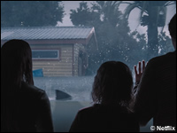«Thrash» letzte Woche mit 37,7 Millionen Aufrufen auf Platz 1 der englischen Filmliste. Diese stürmische Geschichte wurde von Adam McKay («Don’t Look Up») produziert und zeigt «Bridgerton»s Phoebe Dynevor als werdende Mutter Lisa, die in einer überfluteten Küstenstadt gefangen ist, während ein Hurrikan der Kategorie 5 Hochwasser und hungrige Haie mit sich bringt, gerade als bei ihr die Wehen einsetzen.
